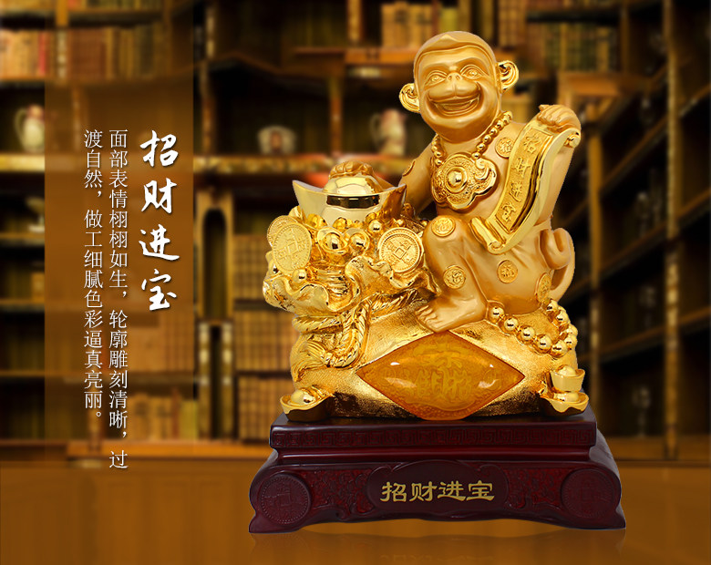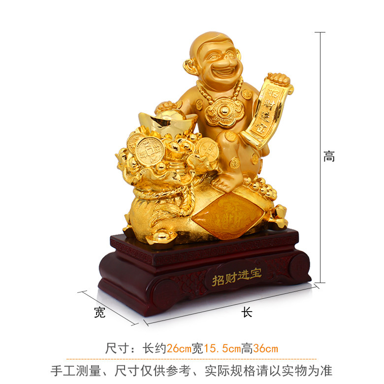 招财进宝约长26cm 宽15.5cm 高36cm产地:广东深圳材质:高等树脂包装:普通纸箱包装