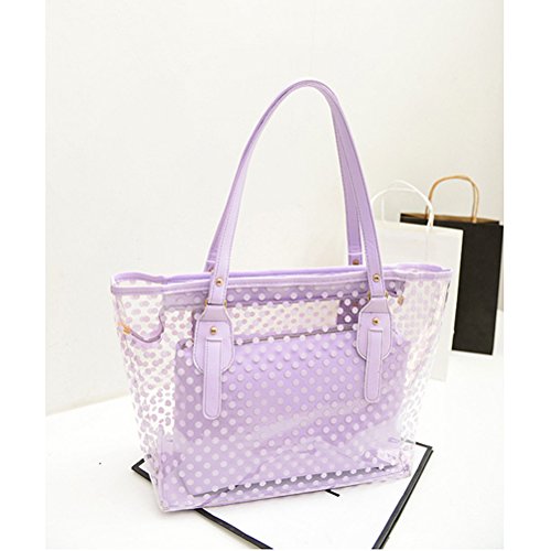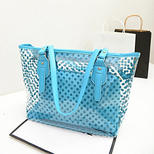 Package Including 1 * Clear Zippered Tote Bag Dots Patterned Women Transparent Beach Handbag with Inside Purse Bag (Blue) 0