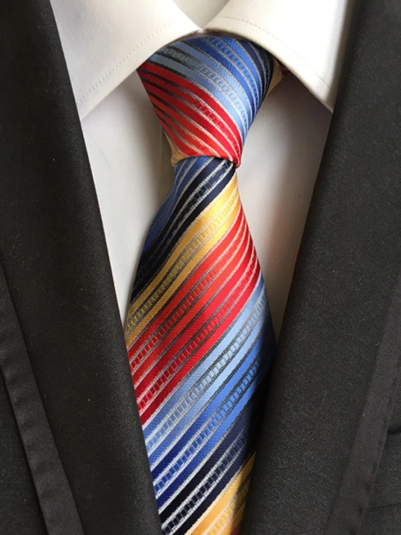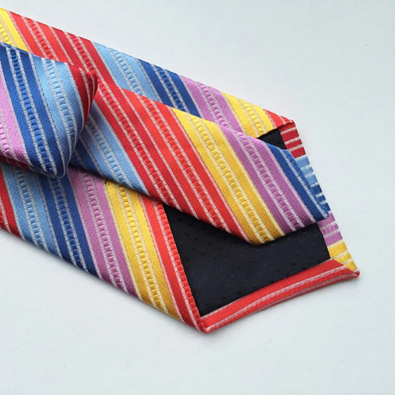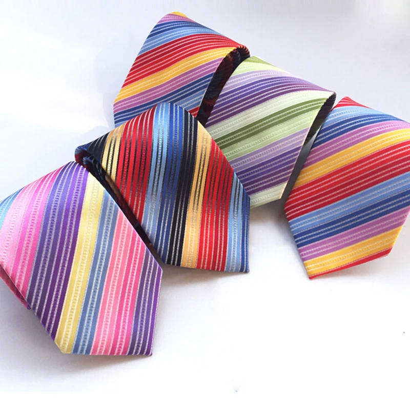 Size: 145cm x 8cm(57 inches x 3.15 inches) Applicable Occasions: Wedding Dress/Business/Commercial Office/Fashion Banquet/Casual Wear Pattern: Colorful Stripes Package: OPP Bag Man Tie: Gravata Technics: Handmade Corbata