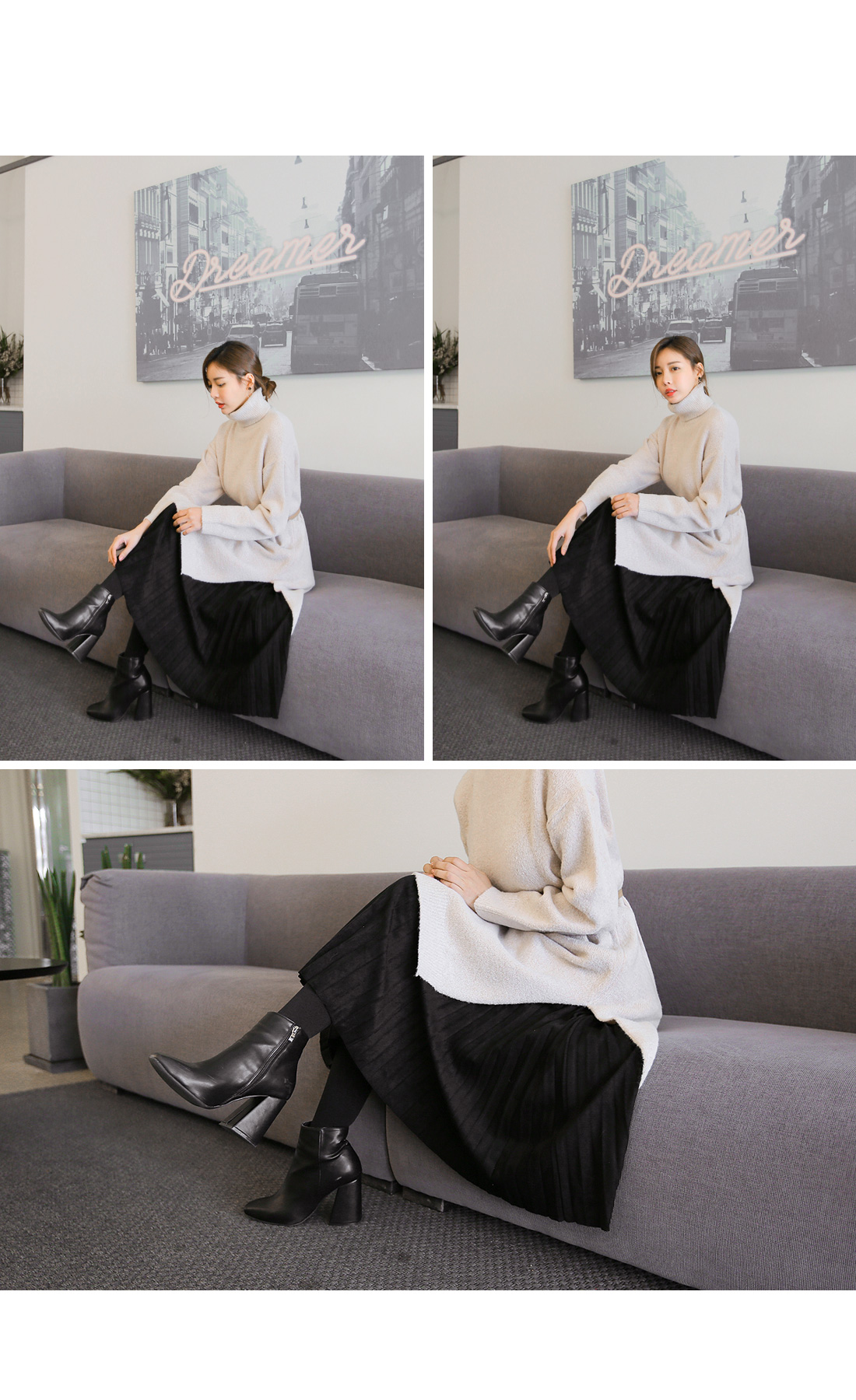 스웨이드 소재감으로 따뜻하게 연출되는 스커트랍니다!