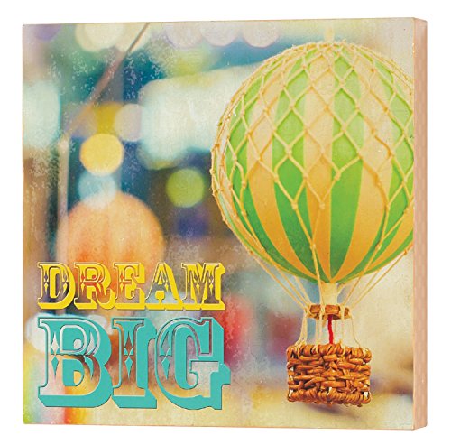 - Fun and uplifting plaque for a child's room, Featuring a balloon and basket image and the words dream big