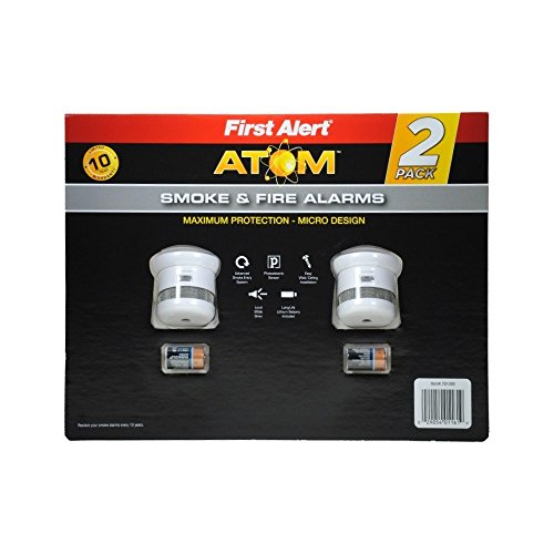 -. Color : White -. EAN : 0029054011619 -. Feature : Nuisance free photoelectric technology reduces false alarms that result from cooking and shower steam / Advanced smoke entry system and micro technology - a fraction of the size of a standard smoke alarm / Loud and Powerful 85db siren - the same power as a standard alarm / Includes long life and 3V CR2 lithium batteries / Perfect for any home or business -. Label : First Alert -. Manufacturer : First Alert -. MPN : P1000 -. PartNumber : P1000 -. ProductGroup : Home Improvement -. ProductTypeName : SECURITY_ELECTRONICS -. Publisher : First Alert -. Studio : First Alert -. Title : First Alert Atom Micro Photoelectric Smoke and Fire Alarm 2 Pack -. UPC : 029054011619