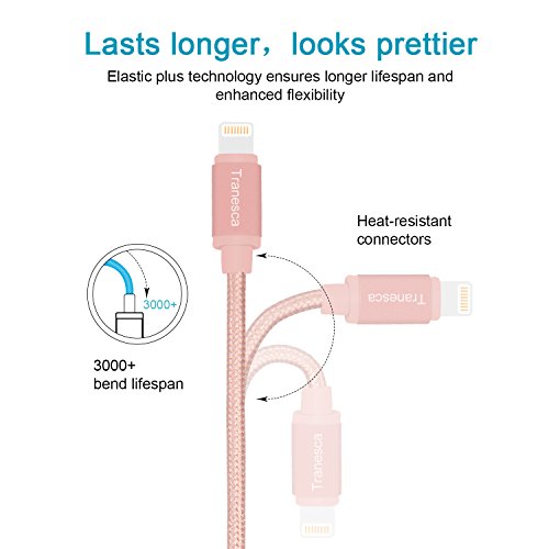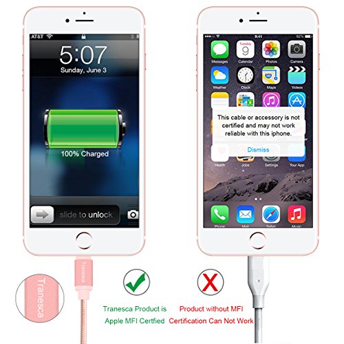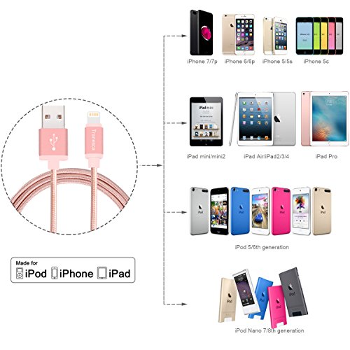 Tranesca 6 feet MFI ( Made for iPhone) lightning cable for iPhone 7/7 Plus/iPhone 6/6s/iPad Air/iPad Pro and more- Rose Gold
