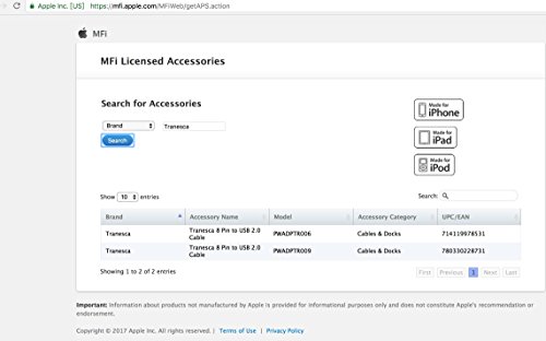 Tranesca Apple lightning charging cable is Apple certified with authentic Apple charging chip integrated to ensure a safe and rapid charge ( Tranesca Apple certification can be found on Apple Website); We are not those "claimed certified" cables