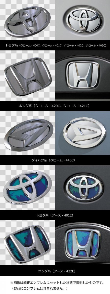 純正エンブレムを取り外すことなく車体側に貼り付ける車種別のプレートです。