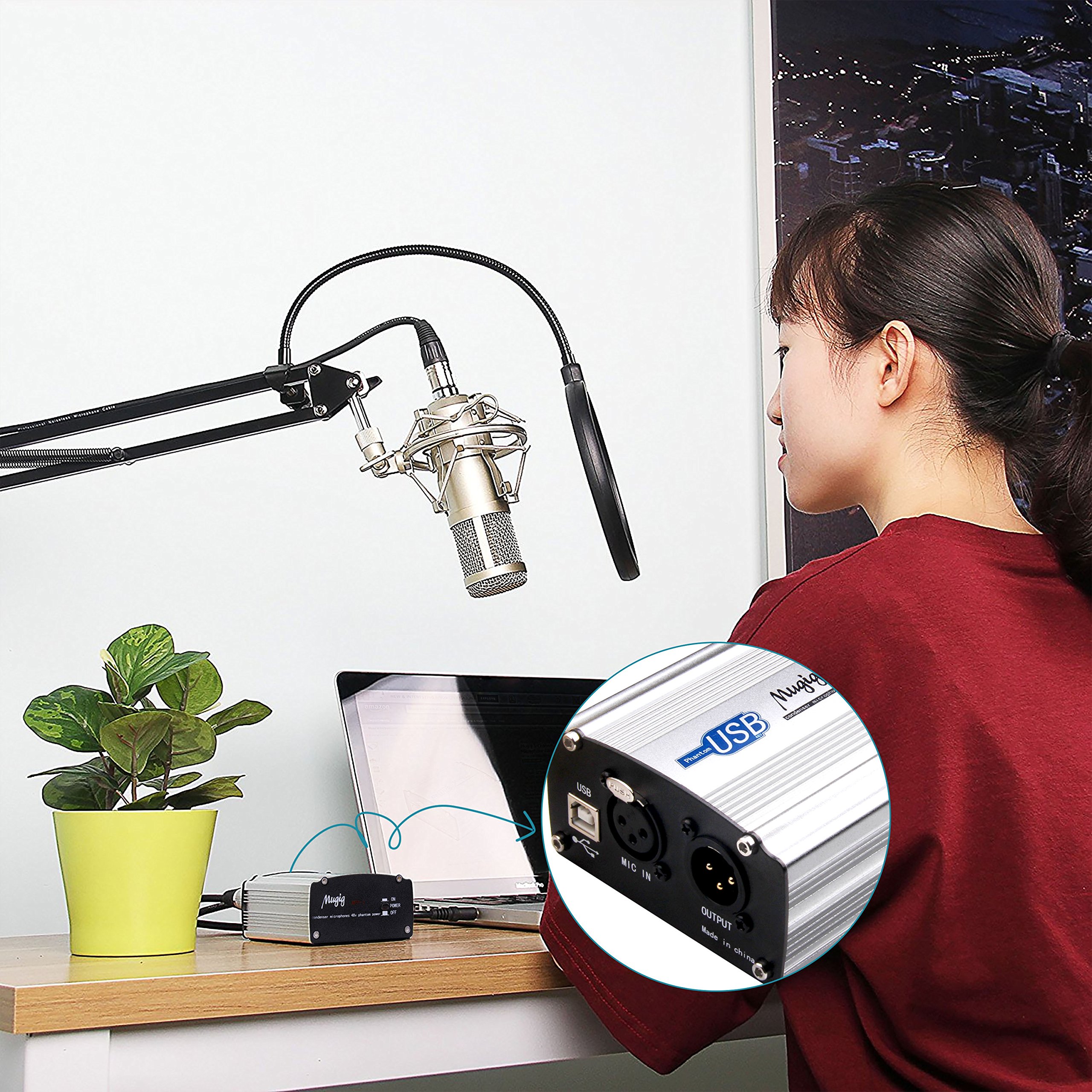 A clean power supply is sent to the condenser microphone that requires 48V, and the sound signal is transferred to the sound card by a compact and durable plastic housing.