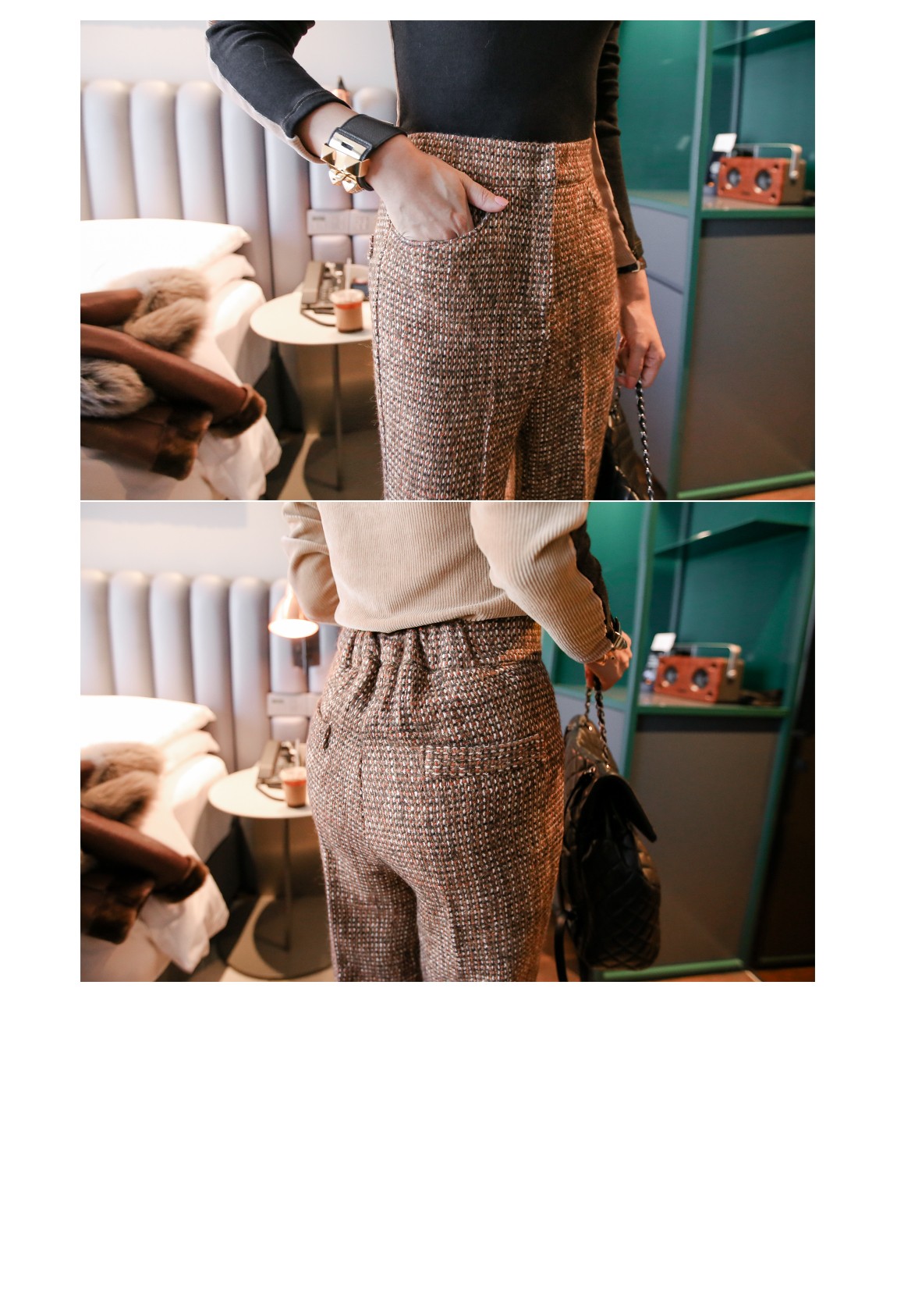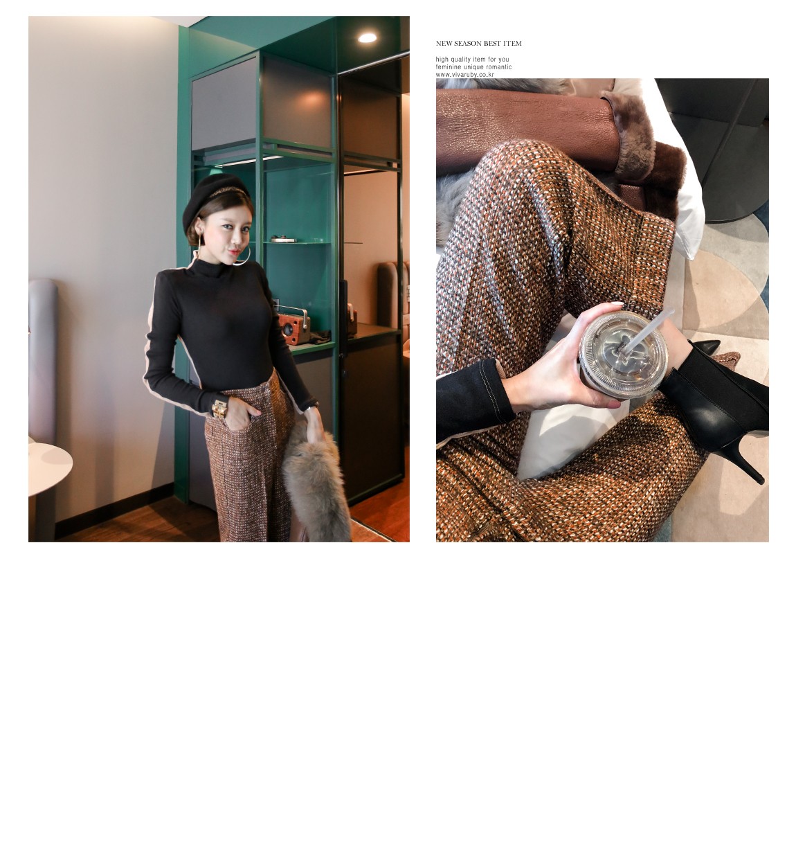 허리는 뒷밴드로 제작되어 안정감 있는 착용이 가능하며 라인을 살려줍니다