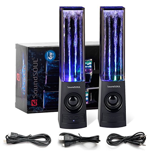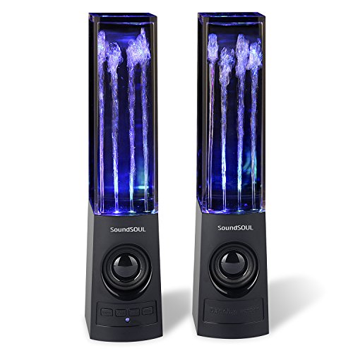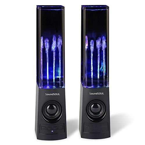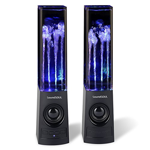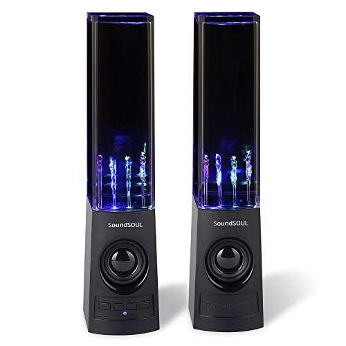 Title : SoundSOUL Bluetooth Dancing Water Speakers LED Speakers Wireless Water Fountain Speakers (Bluetooth 4.0, 4 Colored LED Lights, Dual 3W Speakers, Built-in Rechargeable 1800mAh Battery) - Black