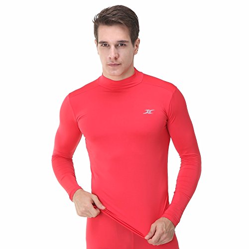 Mock Turtleneck Men Shirts Tops Base Layer Compression Long Sleeve T Shirts LO Red XL