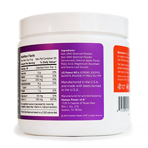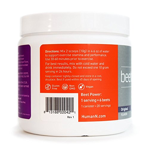 -. Binding : Health and Beauty -. Brand : HumanN -. EAN : 0813188020421 -. Feature : One serving of Beet Elite is the Nitric Oxide equivalent of six whole beets and helps the body promote: Extended exercise endurance, Improved energy and stamina, Increased oxygen delivery in the body. / Use just 30 to 60 minutes before exercise and delivers nitric oxide faster than alternatives. / No need to fill up on several bottles of beet juice before a competition or a workout. Beet Elite mixes easily in 4-6 oz of water. / Beet Elite is formulated to taste great with no artificial flavors, colors or sweeteners. It's also gluten-free and made from non-GMO beets. / Beet Elite is trusted by over 90 professional and collegiate teams -. IsAdultProduct : 0 -. Label : N.E.O.G.E.Nis® Laboratories, Inc. -. Manufacturer : N.E.O.G.E.Nis® Laboratories, Inc. -. NumberOfItems : 1 -. PackageQuantity : 1 -. ProductGroup : Health and Beauty -. ProductTypeName : HEALTH_PERSONAL_CARE -. PublicationDate : 2016-07-08 -. Publisher : N.E.O.G.E.Nis® Laboratories, Inc. -. ReleaseDate : 2016-07-05 -. Size : 20 Servings -. Studio : N.E.O.G.E.Nis® Laboratories, Inc. -. Title : HumanN Beetelite Canister Endurance Superfood Nitric Oxide Activator, Original, 200 Gram -. UPC : 813188020421