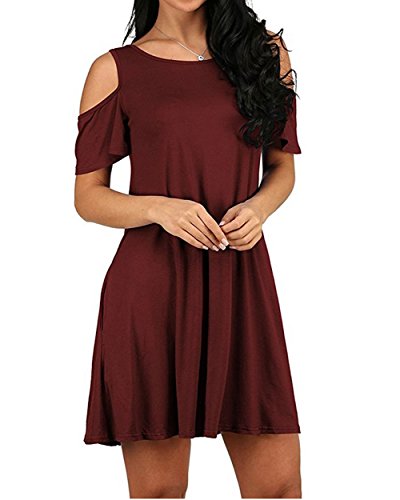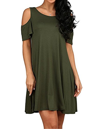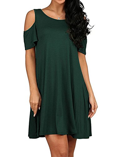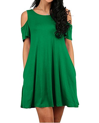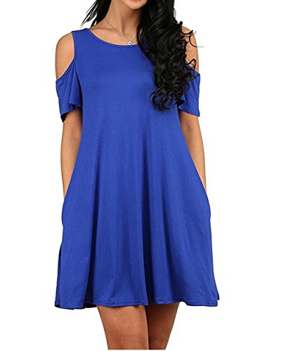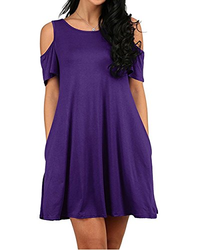 Women's Summer Swing T-Shirt Dress Cold Shoulder Tunic Top Casual Sundresses With Pockets S-2X Plus About Product: Main Material: Cotton