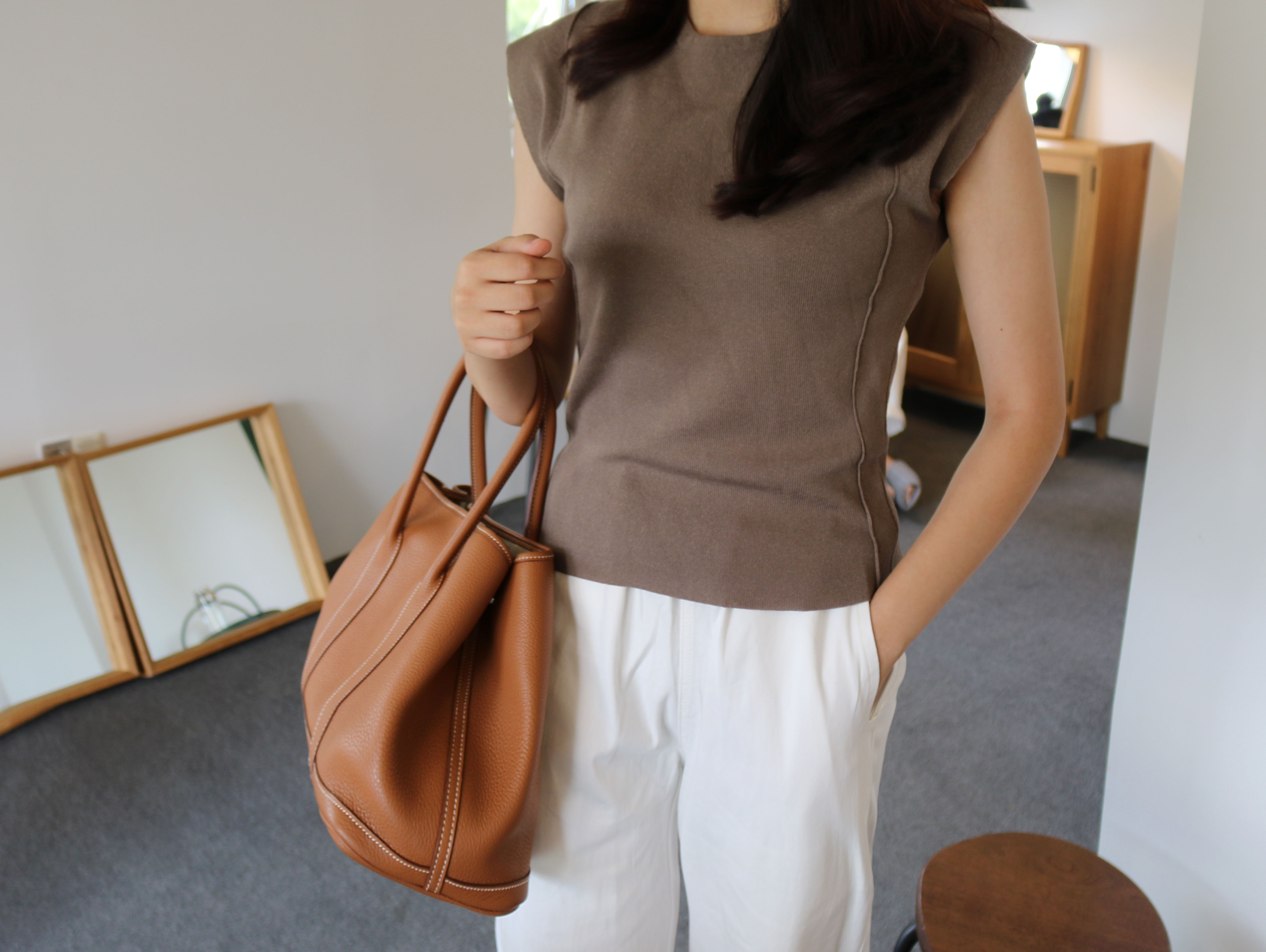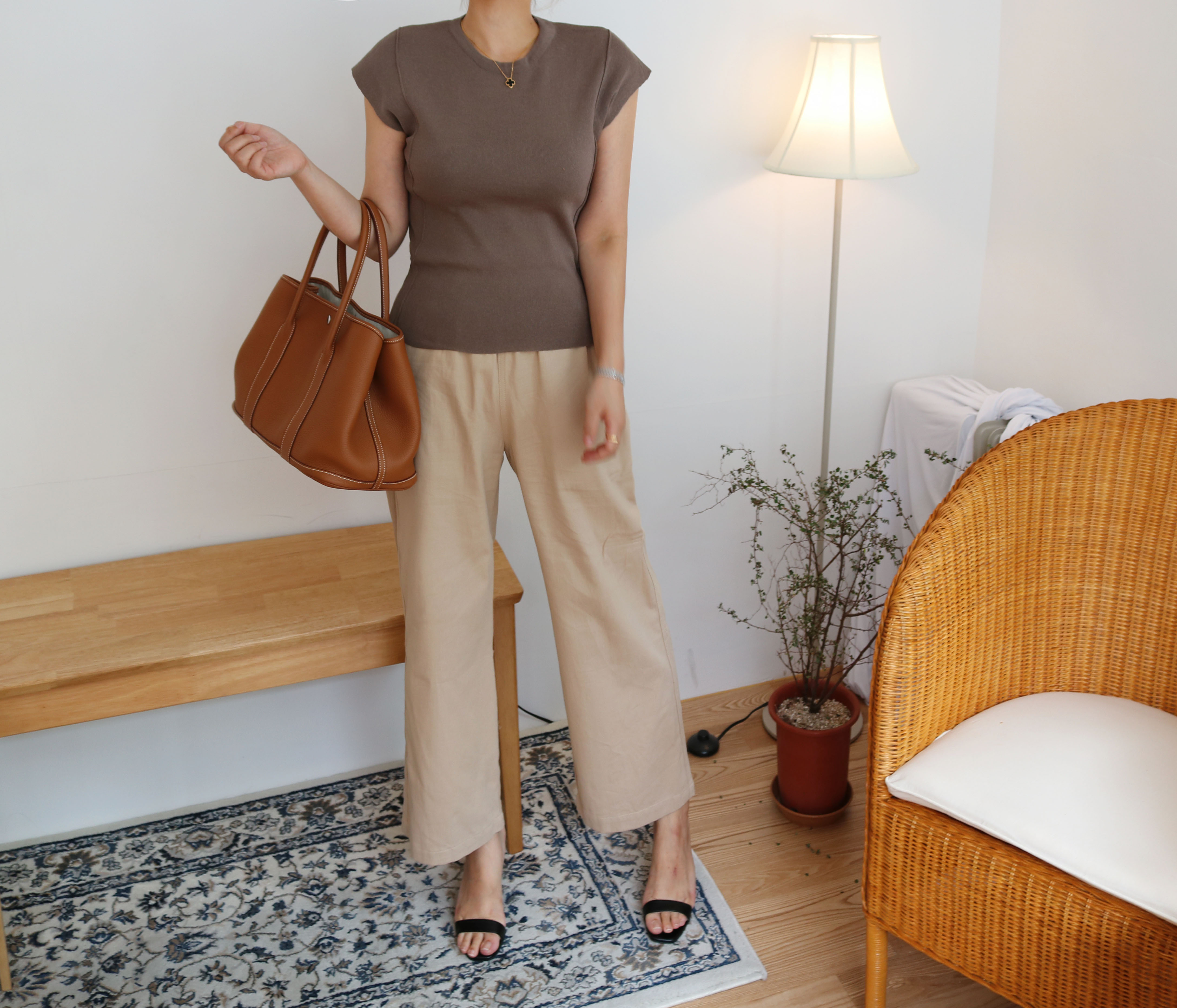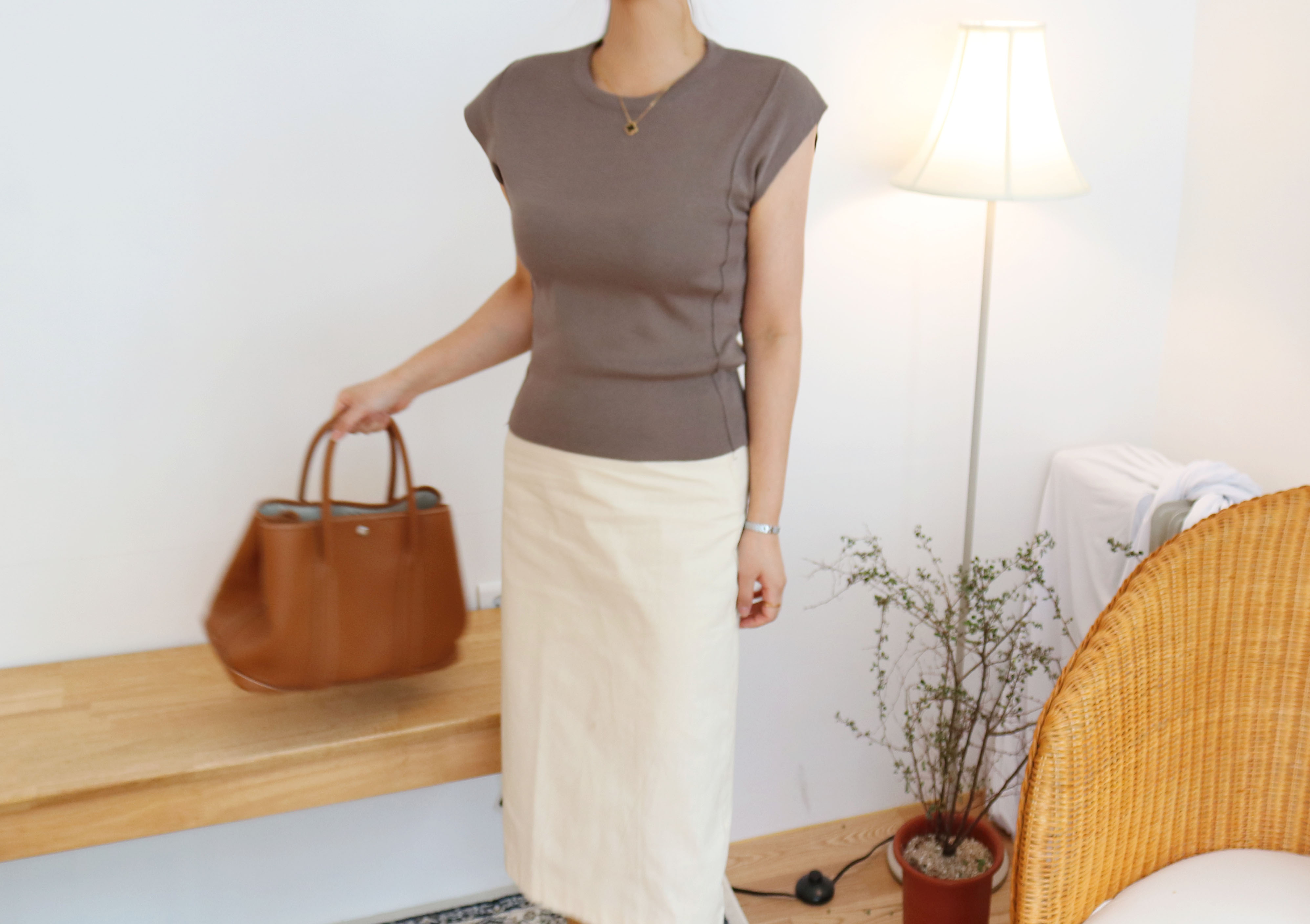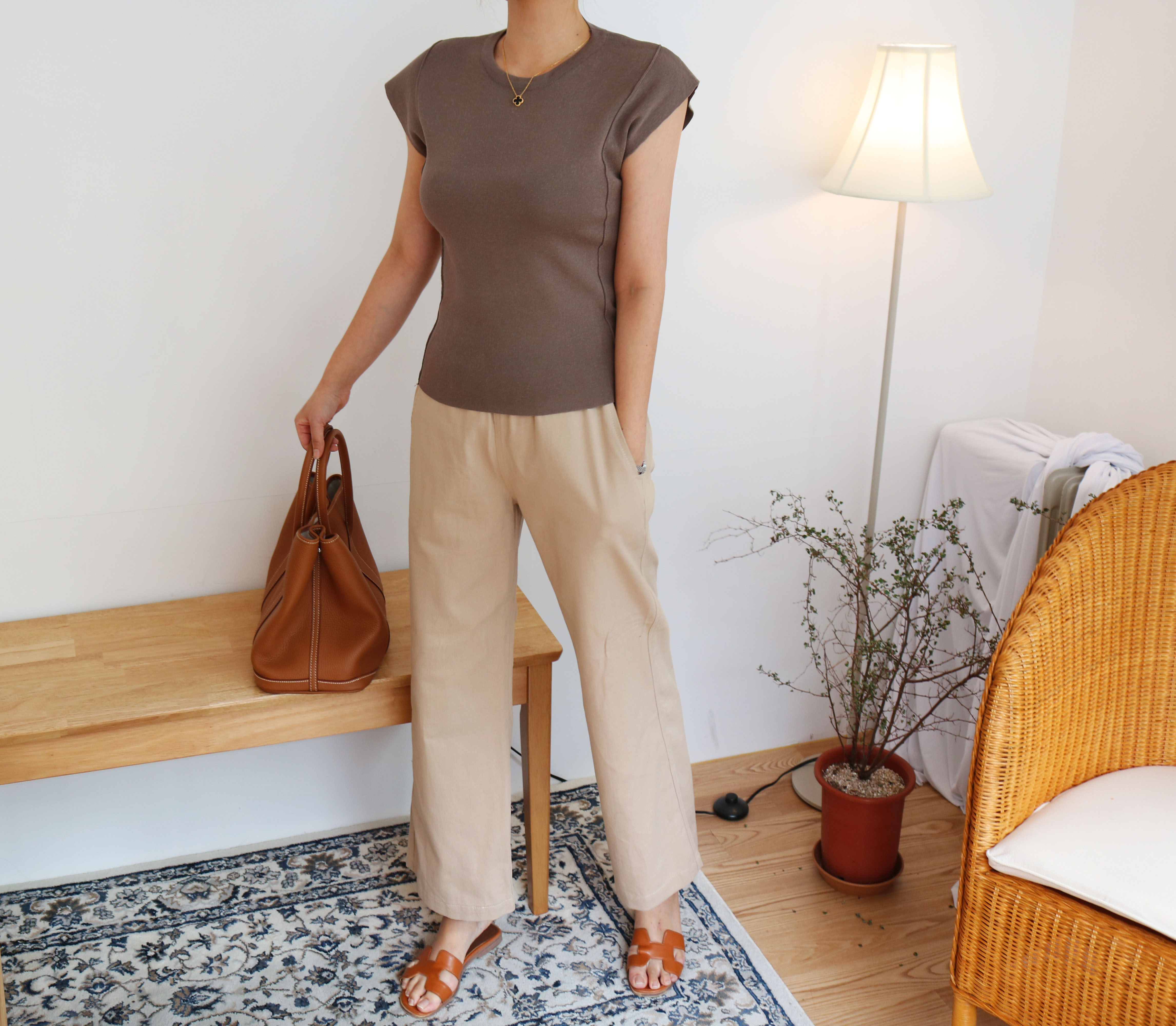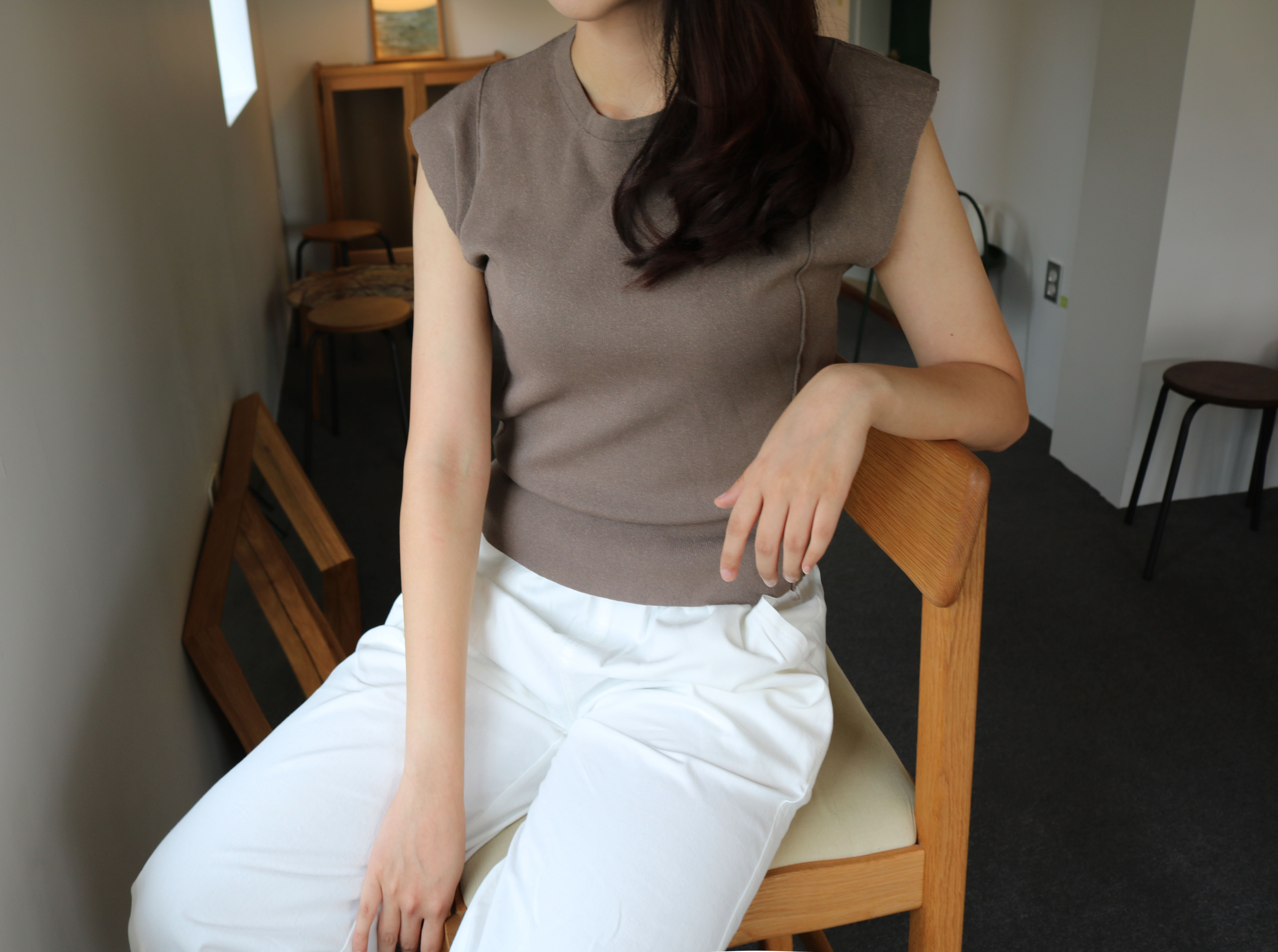 Autumn round neck short sleeves cut 2color Simple but neat and cheongdam dong daughter-in-law look luxurious