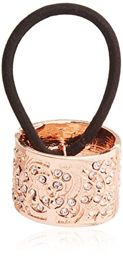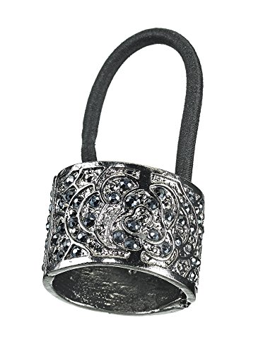-. Title : Elle Decorative Silver Metal Pony Cuff with Black Elastic