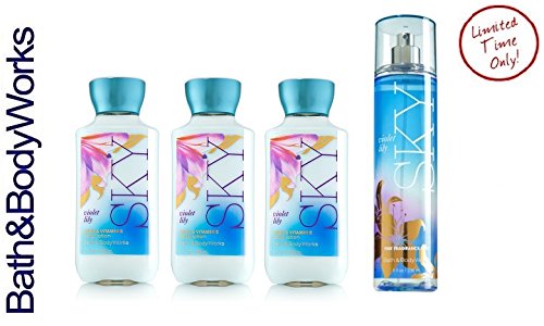 -. Binding : Misc. -. Brand : Bath & Body Works -. EAN : 0730347111304 -. Feature : VIOLET LILY SKY Deluxe Set. SurP.R.Ise someone special with our exclusive Lily Sky Deluxe Set. / 3 Body lotions Size:8 fl oz / 236 mL and 1 Fragrance Mist 8 oz/ 237 ml / A heavenly blend of fresh violet blooms, sparkling bergamot & pink pepper, floating on a cloud of whipped lily petals & sheer sandalwood / An Online Exclusive Fragrance -. IsAdultProduct : 0 -. Label : Bath and Body Works -. Manufacturer : Bath and Body Works -. MPN : Lily -. PackageQuantity : 1 -. PartNumber : Lily -. ProductGroup : Beauty -. ProductTypeName : BEAUTY -. Publisher : Bath and Body Works -. Studio : Bath and Body Works -. Title : Lot of 4 Bath and Body Works Violet Lily Sky Lot Includes 3 Body Lotions and 1 Fine Fragrance Mist -. UPC : 730347111304