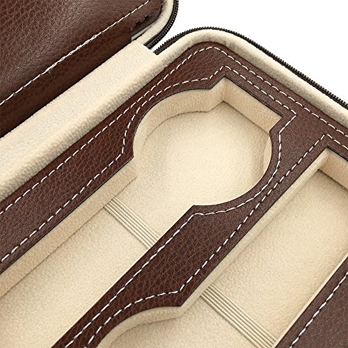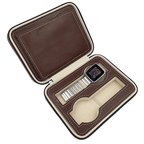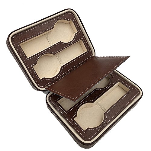 Bladwin R.【Clearance Sale】Fine Leather Watch Holder Protable For Traveling Displaying Storaging with 4 Slots (Brown)