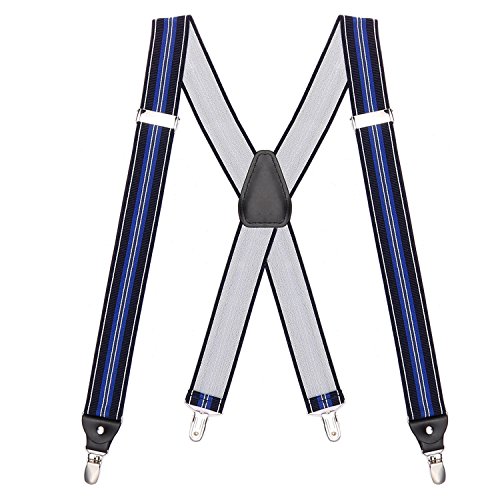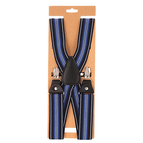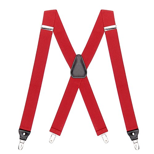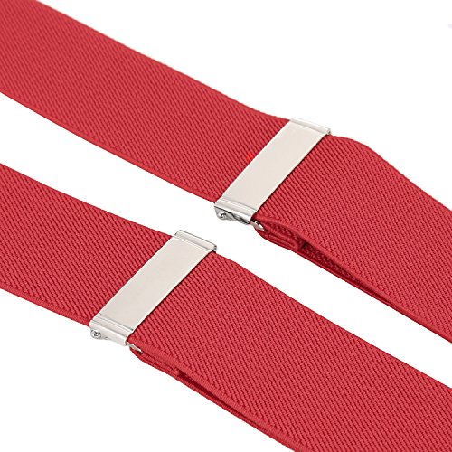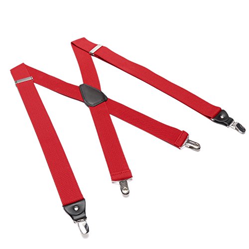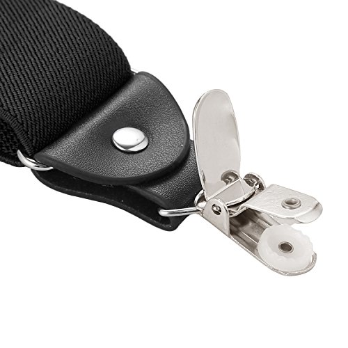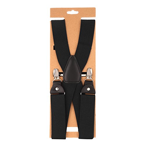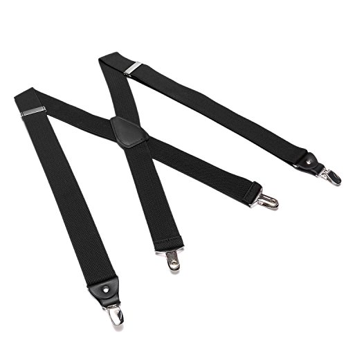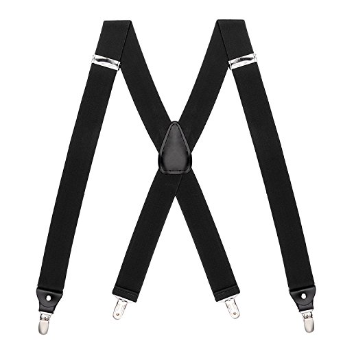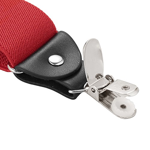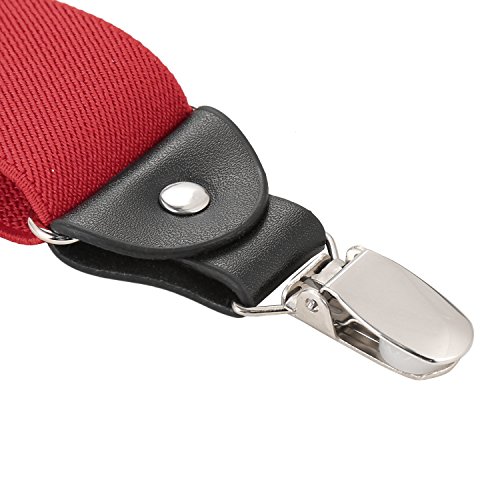 ? Made of elastic and durable fabric, the great braces can last for a long time ?1.5" width insures comfort over the shoulders ?46" length with elastic and adjustable strap, give you an easy time adjusting your cloth ?3 Finger Clips are flexible and solid, hold your pants from falling down ?Solid color design make you a classic and stylish outlook ?Made of elastic and durable fabric, the great braces can last for a long time