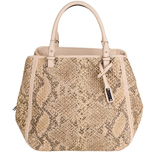 -. Title : abro+ Pitone Crochet 026642-82 Leder Damentasche 36x30x16cm ecru