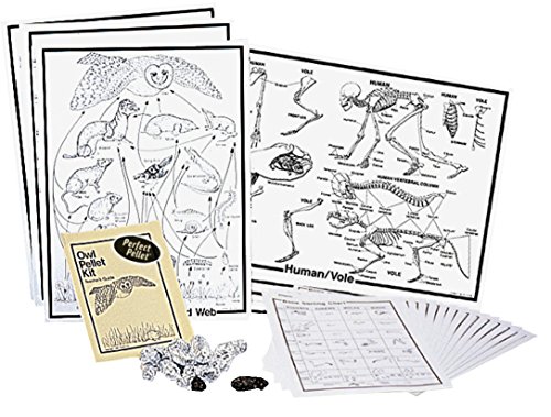 Studio : Pellets Inc Publisher : Pellets Inc Binding : Misc. Product Description Pellets deluxe classroom kit contains ten perfect pellets of each prey (vole, mole and bird), teacher's guide, 15 student bone sorting charts and six posters: the food web, the three prey skeletons, bone sorting chart and human/vole comparison. Meets NSES C (K?4; 5?8). Sanitary and consistent, prefect pellets eliminate the "eww" factor, pest concerns and guesswork from owl pellet investigations. Synthetic pellets each contain a complete, life-size vole, mole or bird skeleton replica, but won't harbor insects or disease. No baking, no fuss and no disappointment or confusion with partial remains. Instead, you and your students can focus on understanding owls and the biology of their prey. Pellets measure 2-1/2-inches 3-1/2-inches each. Warning: Chocking Hazard - Small Parts. Not for children under 3 years. 0