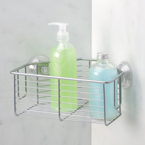 MDESIGN BATH SUCTION CORNER BASKET SHOWER CADDY, STORAGE FOR SHAMPOO, CONDITIONER, SOAP - SILVER