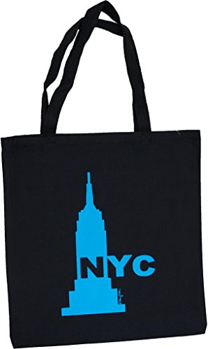 New York City NYC Canvas Tote Bag Heavy Weight 12 Oz Cotton Large 16" x 14.5" 10" Handle Reusable Grocery Souvenir Shoulder Shopping Bags By Mary Ellis (Empire Blue Black)
