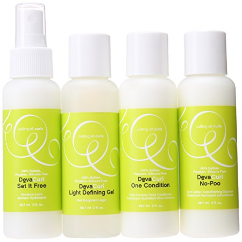 DevaCurl Travel Kit 4 Piece Set: Buy DevaConcepts Hair Care Kits - DevaCurl Try Deva - Fly Deva Trial + Travel Kit Includes: DevaCurl No Poo Cleanser DevaCurl One-Condition DevaCurl AnGEL Styling Gel DevaCurl Set it Free Moisture Lock Spray Each item is 88.7ml/3oz