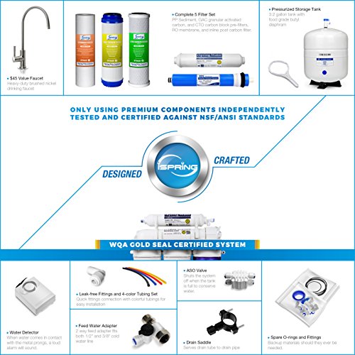 Part Number:RCC7 Item Weight:25 pounds Product Dimensions:14.5 x 5.2 x 17.5 inches Item model number:RCC7 Item Package Quantity:1 Included Components:RO System, Brushed Nickel Faucet, Storage Tank and Filter Cartridges with RO Membrane Batteries Included?:No Batteries Required?:No Shipping Weight:28.3 pounds (View shipping rates and policies)
