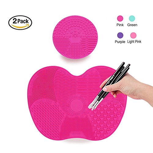 TailaiMei Makeup Brush Cleaning Mat,Set of 2 Silicone Cosmetic Washing Tool with Suction Cups(Pink)
