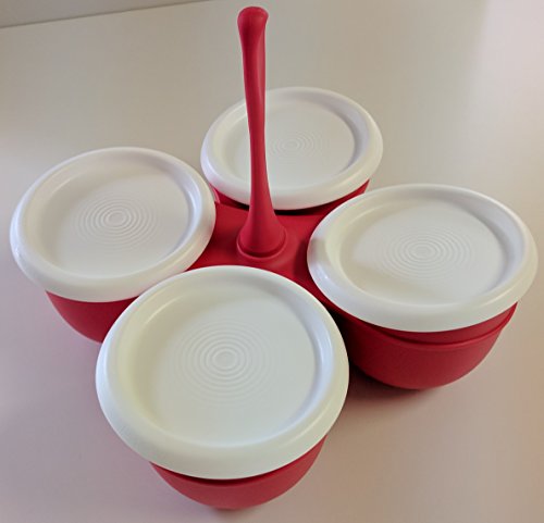 - 4 x 1-cup bowls that connect to serve Condiments, Jams, Sauces or Toppings