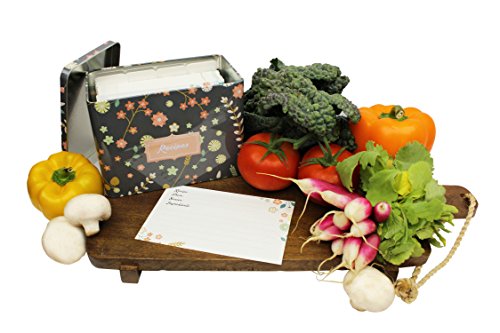 Customizable and beautiful to boot! With 20 blank dividers and 300 lined cards, this metal recipe box from Splendid Chef has everything you need to organize all your favorite recipes. Whether you're mixing up a batch of Grandma's favorite sugar cookies, a delicious gluten- free cake, or your secret barbecue sauce for a summer picnic, you'll quickly put your hands on the right recipe, thanks to Splendid Chef. Blank tabbed dividers make it easy for you to create your own categories, rather than forcing you to conform to the "standard" as other recipe box sets do. The thicker, more durable cards mean your recipe collection will hold up even when the kids are helping out. Best of all, though, the classic design is perfect for displaying on a shelf or countertop, so your recipe collection is always close at hand. Having a kitchen-themed bridal shower? Want to welcome a new neighbor? The Splendid Chef Recipe Box is the perfect centerpiece. Simply fill it with recipes for a gift that is certain to be appreciated and remembered. ? Holds 4x6" cards. ? 10 blank, customizable category dividers included. ? 100 smudge-proof, lined recipe cards included. ? Retro floral design looks lovely on your counter. ? Holds up to 300 cards total. ? Refills sold separately. Click "add to cart" to order your Splendid Chef Recipe Box set today, and pick one up for a gift, too! 0 |