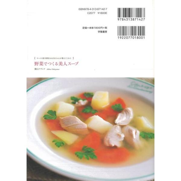 【商品説明】 定価(税込み):1,944円 値引き:10% OFF 自然や月のリズムに合わせながら野菜やハーブの力でカラダとココロのキレイを引き出すビューティー&デトックスの簡単レシピ集!東欧に伝わる伝統的なナュラルケアや美容の知恵と西洋薬膳料理の調理法をベースにした、1年中使える健康と内臓からの美しさのためのスープレシピ。 バーゲンブック 新品 特価 格安 クッキング 健康食 栄養 ダイエット食 知恵 料理 調理 健康 ダイエット 西洋 美容 ケア ビューティー レシピ | |