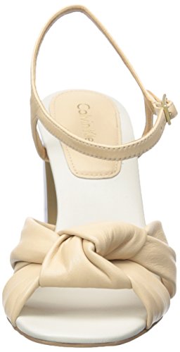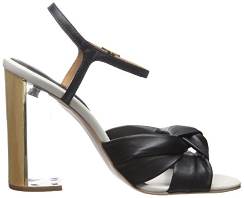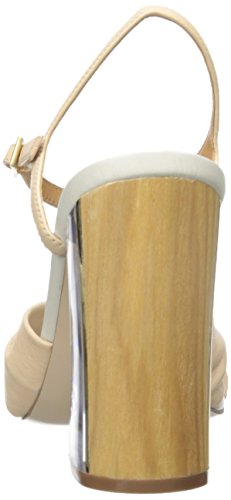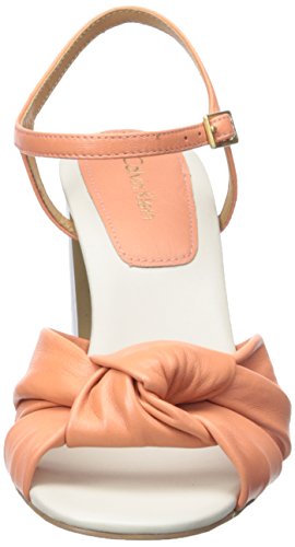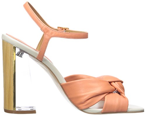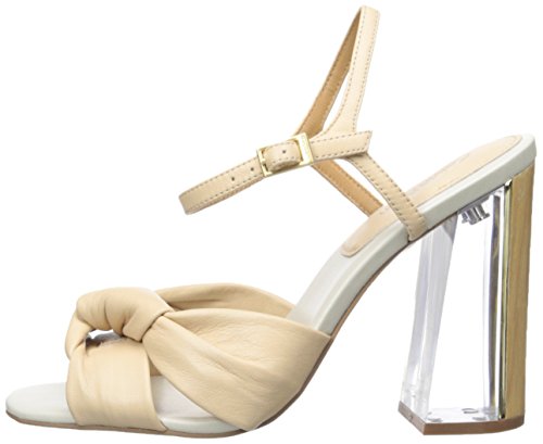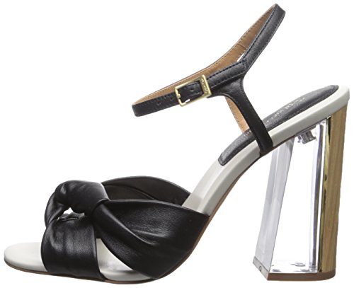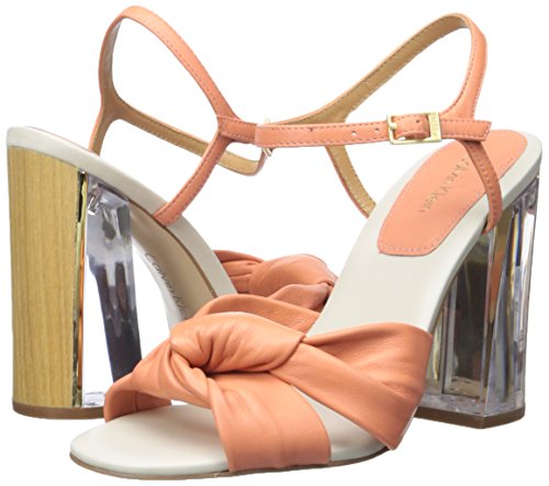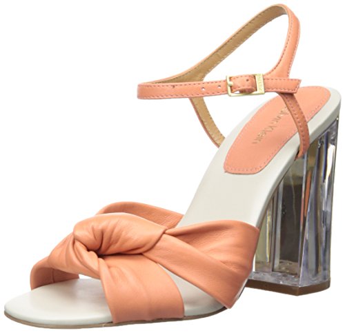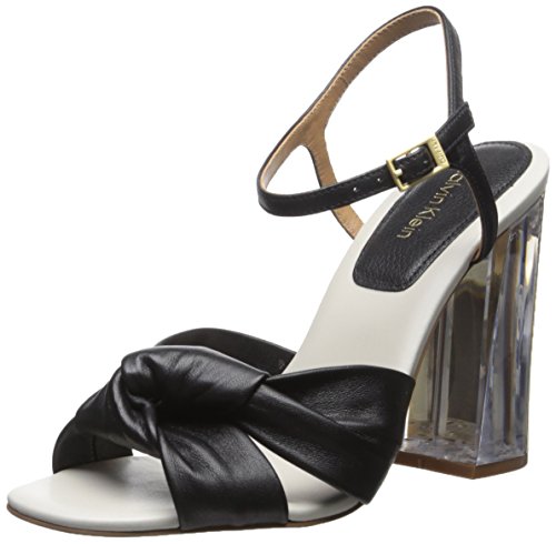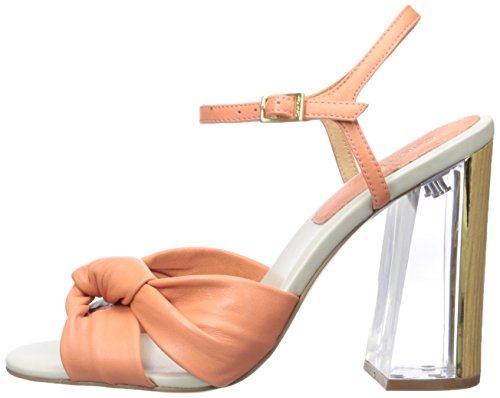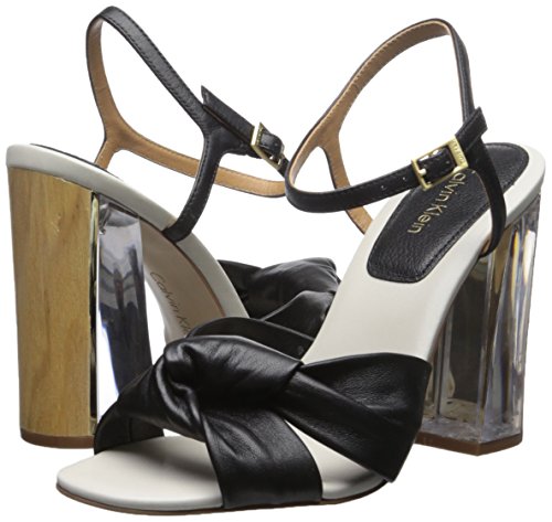 Statement-making sandal featuring knotted leather toe straps and chunky heel made from wood and translucent material