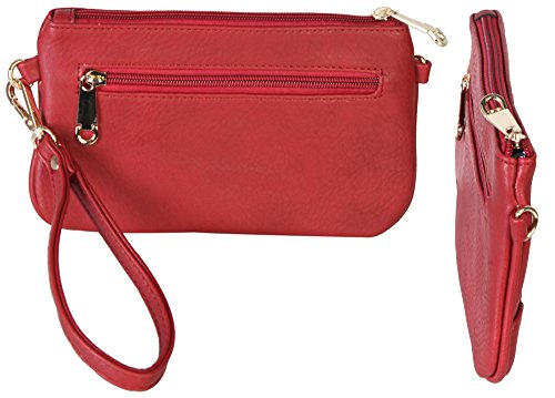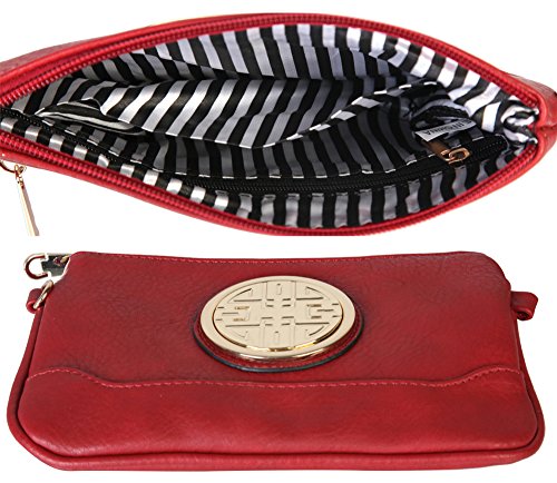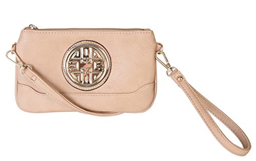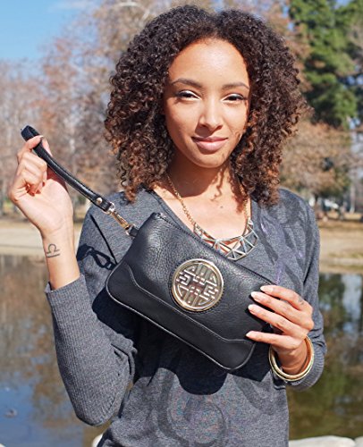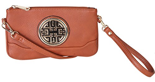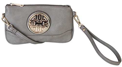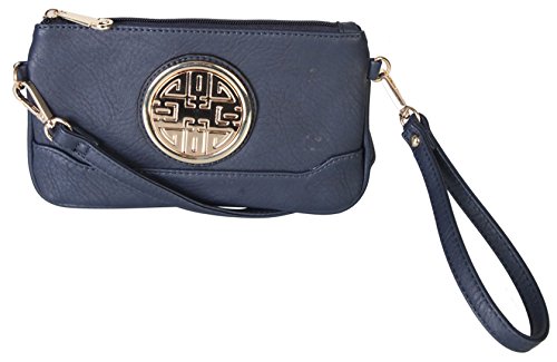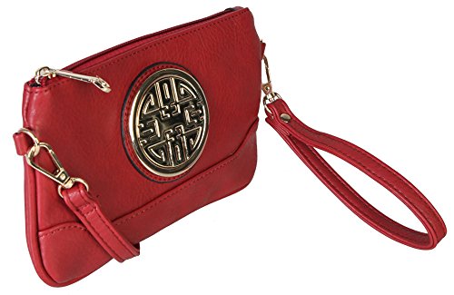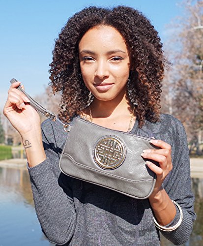 PU Leather Accented Gold Metal Rounded D¨¦cor Small Cross-body Handbag with Removable Strap and Wrist Strap Clutch.