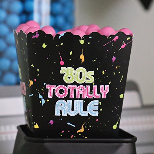CANDY BOX PARTY SUPPLIES: 80's Retro candy boxes will hold a variety of party food. Fill them with sweet treats or salty snacks. Candies and other goodies will look amazing on your candy buffet with these eighties favor boxes.