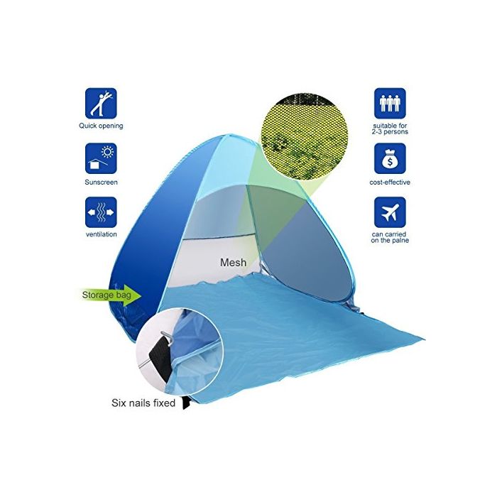 Lets Funny 2-3명 용돔 텐트 라이더의 원터치 텐트 간단10 초설치 타프 기능으로 쾌적 공간 직사일광부터 지킨 원터치 썬쉐이드 UV 초경량 텐트 (블루)