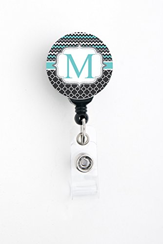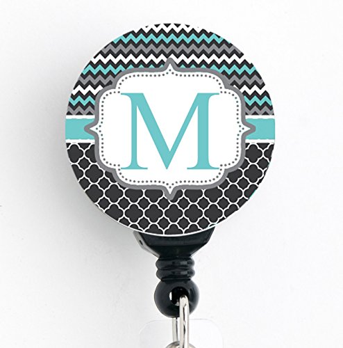 M Initial Chevron Trellis - Retractable Badge Reel With Swivel Clip and Extra-Long 34 inch cord - Badge Holder