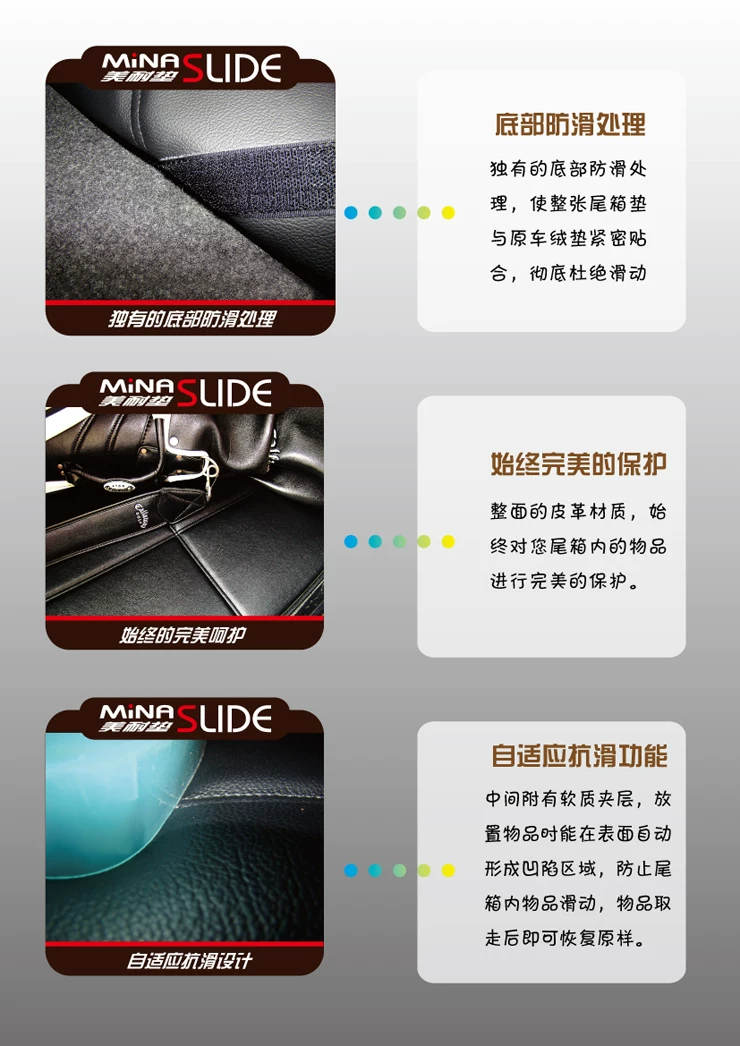 4 properties: tail box pad is arranged at the bottom of super anti slip hookis a 尾箱 pad and the original car pad tightly thoroughly eliminate slidingeffectively enhance the safety performance of the.