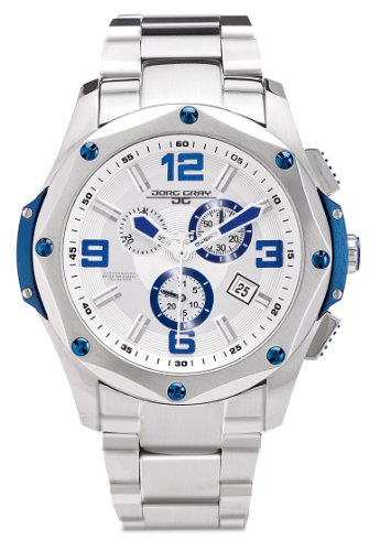-. Title : Jorg Gray 9100 Swiss Chronograph - Silver-Tone Textured Dial with Blue Accents