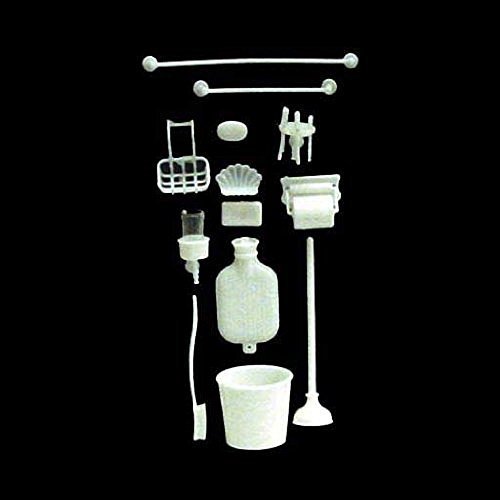 Chrysnbon Bathroom Accessories Kit. Contains 18 unfinished pieces. Chrysnbon Miniature Products are all beautifully handcrafted in the USA of polystyrene. Designed for the 1:12 scale miniature setting.