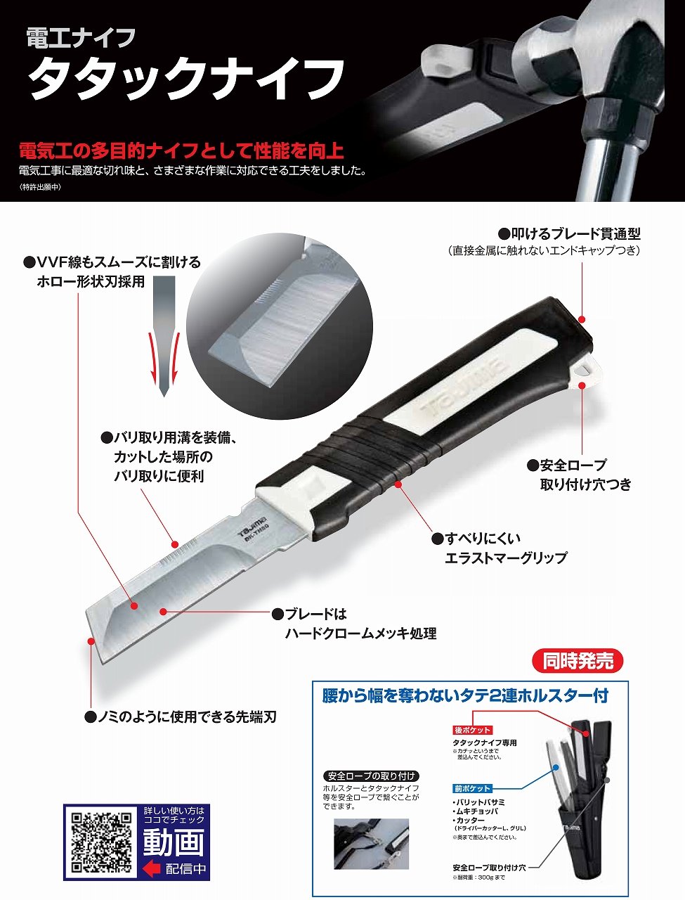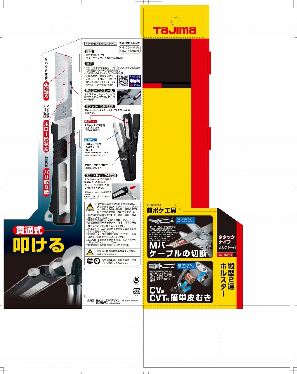 With safety rope mounting hole, it is possible to connect holster and tatakknife with safety rope