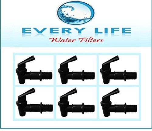 Black Plastic Faucet 6-pack, 3/4 Inch, Spigots, Water Filter Bucket, Water Crock Tap, Replacement Beverage Dispenser Tap with Washers and Nut