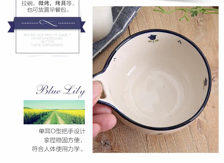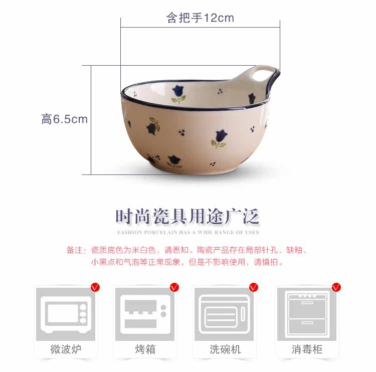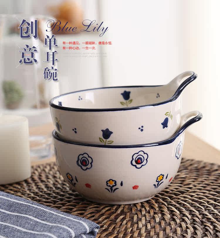 单耳陶瓷碗可爱清新日式餐具碗创意儿童小碗汤碗水果沙拉碗布丁碗