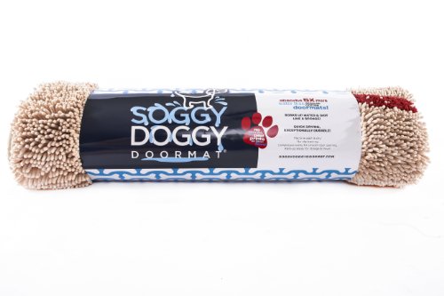 The Soggy Doggy Doormat is made from millions of textured, ultra-fine strands woven together, so the surface area of this doormat is much greater than meets the eye. It absorbs more water and dirt than a typical doormat, dries faster, and remains bacteria and odor-free too. The microfiber chenille “noodles” are so soft and snuggly, dogs enjoy sleeping on these doormats too. They work beautifully as crate-liners and travel beds too. Perfect for the back door, back of the car, the couch, the crate --anywhere a wet dog goes, the Soggy Doggy Doormat can go too. Machine wash and dry.Feature