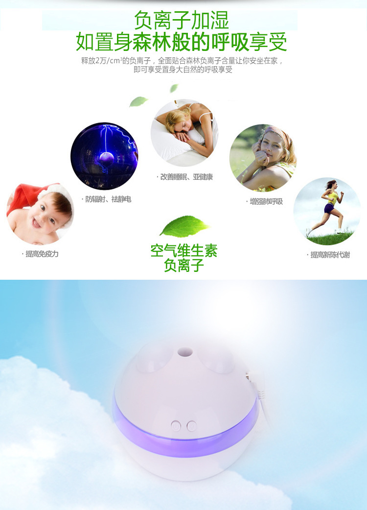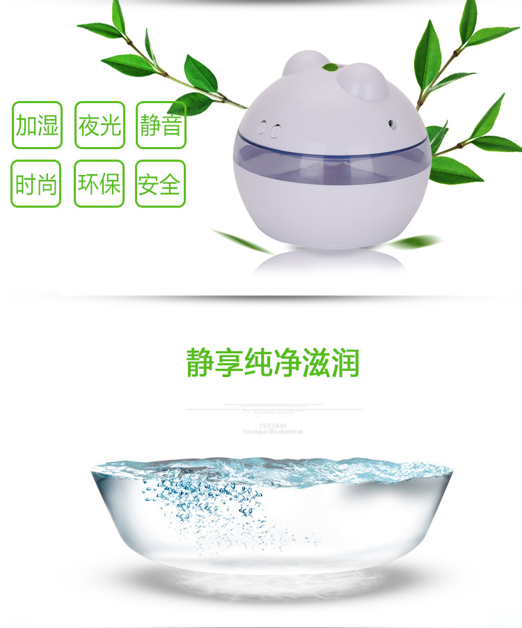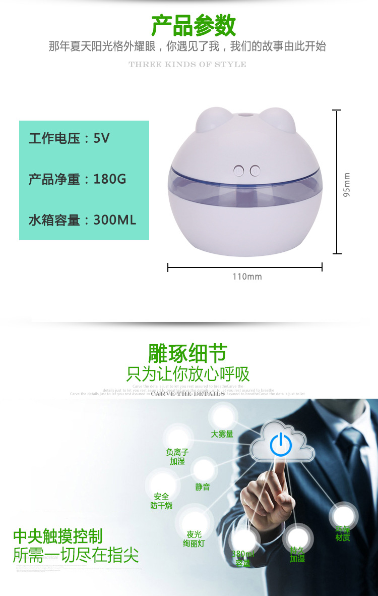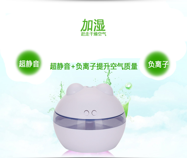 加湿: 香薰加湿双按键带小夜灯
