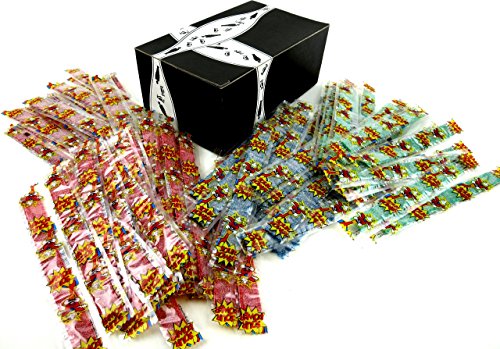 -. Feature : Includes twenty 0.35 oz packages of Dorval Green Apple Sour Power Belts, twenty 0.35 oz packages of Dorval Blue Raspberry Sour Power Belts, twenty 0.35 oz packages of Dorval Watermelon Sour Power Belts, and twenty 0.35 oz packages of Dorval Strawberry Sour Power Belts / Individually Wrapped / Product of the Netherlands / In a Black Tie Mercantile Signature™ Gift Box (Pictured)