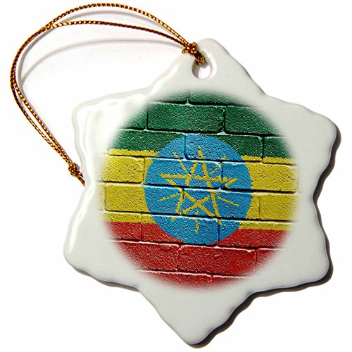 3dRose orn_155227_1 National Flag of Ethiopia Painted Onto a Brick Wall Ethiopian Porcelain Snowflake Ornament, 3-Inch