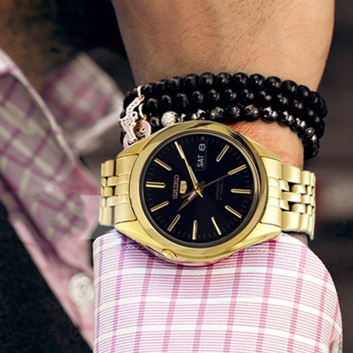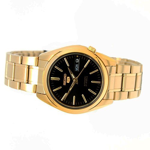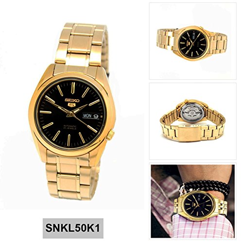 -. Title : Seiko 5 #SNKL50 Men's Gold Tone Stainless Steel Black Dial Automatic Watch