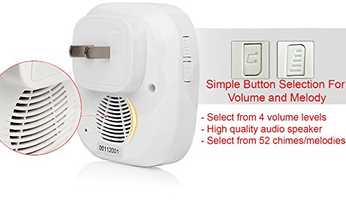 ✅ WANT TO LISTEN TO OUR CHIMES/RINGTONES BEFORE YOU BUY? GO AHEAD - Just SCROLL DOWN to the Technical Specs section below and click on the Specification Guide link to DOWNLOAD the PDF file. Open it with Adobe Acrobat Reader to play all 52 ringtones. We're proud to announce we've developed a custom music chip in our doorbells that includes carefully selected. Over 50+ different ringtones. Operating range of over 500 ft (1000 ft in open area). 4 levels of adjustable volume from 25db - 110db.