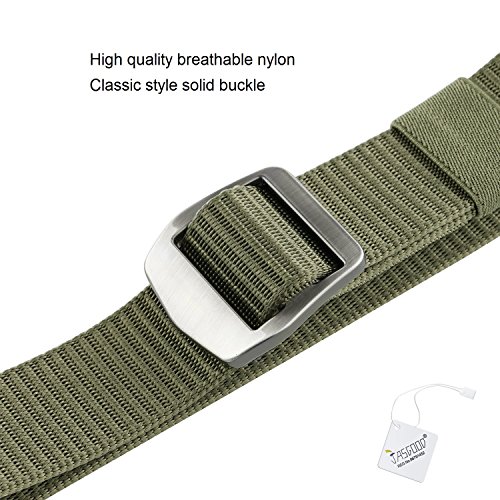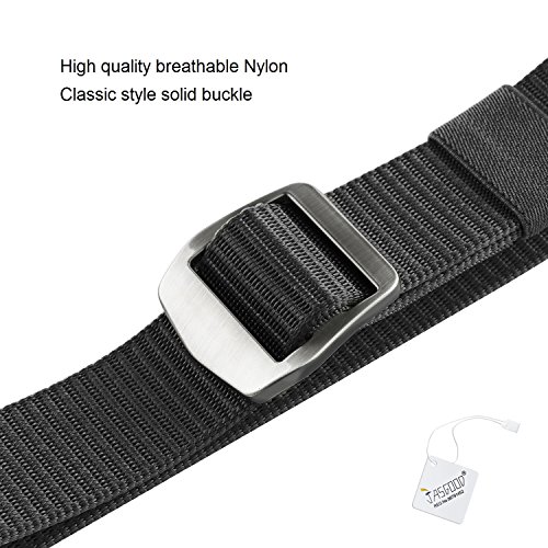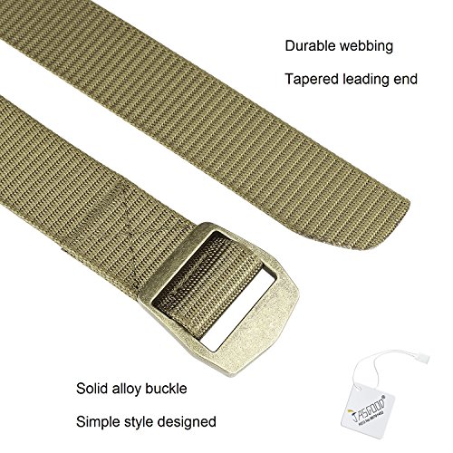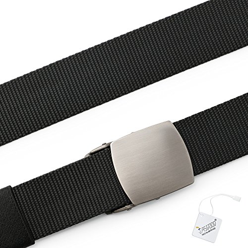 Binding : Apparel Product Description Foreword JASGOOD, known as a worldwide registered brand owned by Emit International Group Ltd. is one of the most desired brand in North America, Europe and Asia. We do want to provide the best products and service to our customers.Here, We believe you can always find a satisfaction product suit for you! We wish you will have a comfortable shopping experience on our store! JASGOOD Mens Nylon Military Webbing Belt Breathable Outdoor Tactical Belt with Solid Buckle 1. Made of high quality lightweight nylon, breathable and durable. 2. Ideal belt hiking, hunting, camping and other outdoor activities. 3. No holes in the belt, fully adjustable to perfect fit. 4. Total length: 125cm-130cm/49.2-51.2 inch(include buckle),perfect for pants size below 42'. Belt width 3.8cm/1.5 inch. All Round Service Warranty 1. We provide 100% satisfaction and 180 days warranty on our products. 2. If any questions or concerns, we will respond your email soon with a satisfied solution in 24 hours. 0