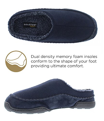 The Cassius men's slip on slipper is available in navy blue. Gold Toe Legacy Chances are that if you know the name of any brand of sock in the world it's the iconic GOLDTOE® brand. GOLDTOE® socks have been the category leader and SNavydard of Quality® for over eight decades. The principles of innovation infuse every aspect of the GOLDTOE® brand. We are always seeking the "better" way - better materials, better processes, and better performance. Now we are bringing the same quality and innovation to our new line of slippers and footwear. GOLDTOE® footwear are carefully constructed and designed to deliver lasting Comfort, Fit and Durability. GOLDTOE® a leader of SNavydard Quality® for over eighty years. The Best Socks on Two Feet® now also make the Best Shoes on Two Feet® 0 |