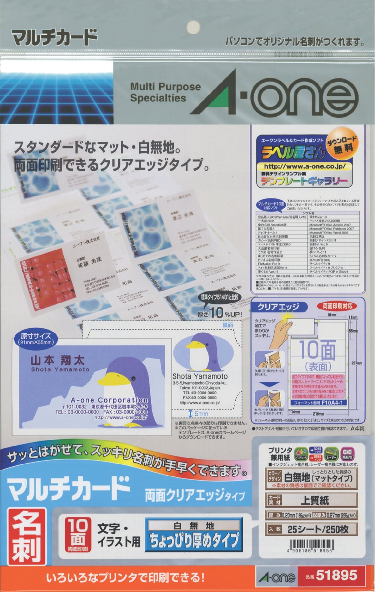 A-One multi-card business card both sides clear edge a little thicker 250 sheets of 51 895